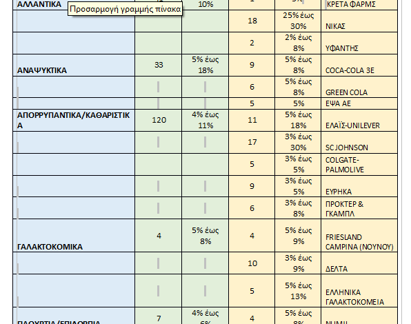 Ενδεικτικά οι μειώσεις τιμών ανά κατηγορία προϊόντων (οι οποίοι ποικίλουν ανά εταιρεία και κωδικό προϊόντος) έχουν ως εξής: