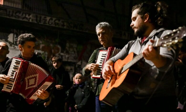 Στο μνημείο του Γρηγορόπουλου στα Εξάρχεια μουσικοί και διαδηλωτές