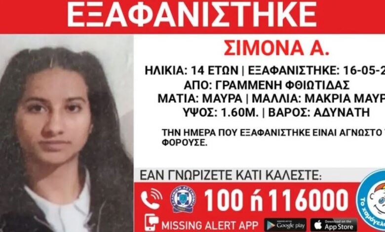 Συναγερμός για εξαφάνιση 14χρονης από τη Φθιώτιδα