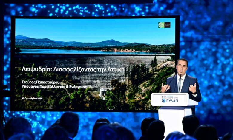 Μετά από μία περίοδο συζητήσεων και υδρολογικών αναλύσεων υπάρχει ένα συγκεκριμένο και κοστολογημένο πλαίσιο μεσοπρόθεσμων και μακροπρόθεσμών πλάνων για τη θωράκιση της Αττικής, της Βοιωτίας, της Θεσσαλονίκης και της Χαλκιδικής από τη λειψυδρία. Αυτό δήλωσε ο υπουργός Περιβάλλοντος και Ενέργειας, Σταύρος Παπασταύρου κατά τη διάρκεια συνέντευξης τύπου, στο πλαίσιο της εκδήλωσης για τα 100 χρόνια της ΕΥΔΑΠ.