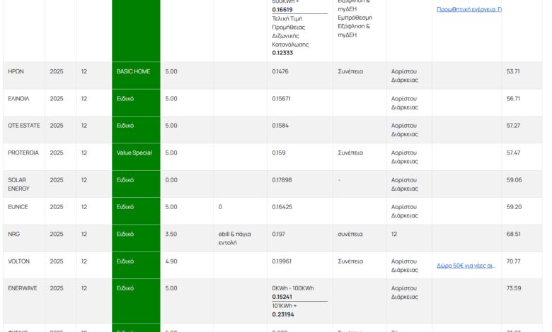 Αναλυτικά, τα πράσινα οικιακά τιμολόγια για το Δεκέμβριο έχουν ως εξής: