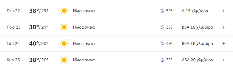 Τα πράγματα χειροτερεύουν το Σάββατο (24/5/2025), όπου το θερμόμετρο θα σκαρφαλώσει στους 40 βαθμούς. Είναι η μέρα που οι περισσότεροι Έλληνες φίλαθλοι θα κάνουν τη βόλτα τους στο Άμπου Ντάμπι, καθώς δεν υπάρχει αγωνιστική δράση.