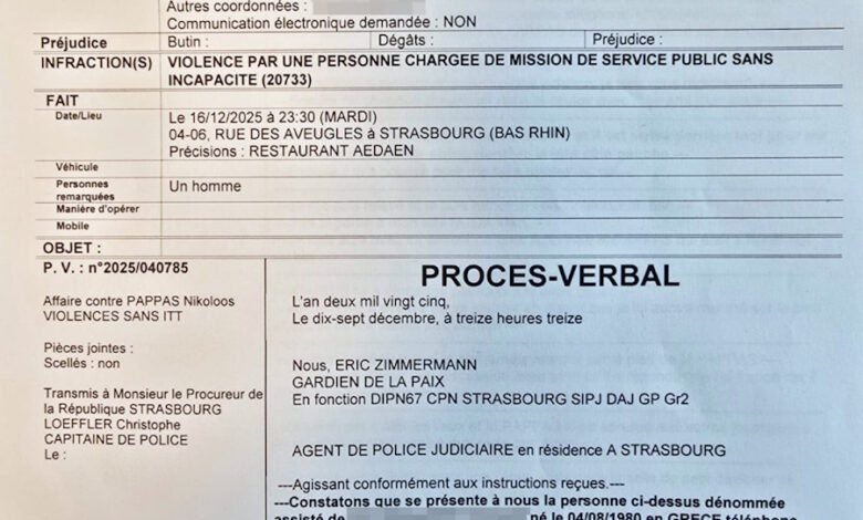 «Στις 16/12/2025 περί ώρα 22:30, έφτασα συνοδευόμενος από αρκετούς φίλους δημοσιογράφους όπως εγώ, στο εστιατόριο AEDAEN, που βρίσκεται στην οδό 04-06 rue des Aveugles στο Στρασβούργο.