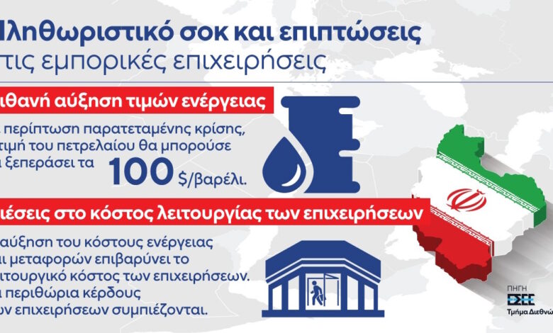 Ιδιαίτερη αναφορά γίνεται και στις επιπτώσεις στο λιανεμπόριο. Όπως σημειώνεται, η άνοδος των τιμών ενέργειας και μεταφορών ενισχύει τις πληθωριστικές πιέσεις, αυξάνοντας το κόστος παραγωγής, μεταφοράς και διάθεσης προϊόντων, ενώ ταυτόχρονα περιορίζει το διαθέσιμο εισόδημα των νοικοκυριών. Οι επιχειρήσεις λιανικού εμπορίου αντιμετωπίζουν συμπίεση των περιθωρίων κέρδους και αυξημένες ανάγκες κεφαλαίου κίνησης.