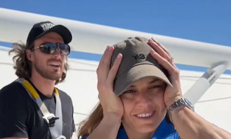 Τρομαγμένη η Μαρία Σάκκαρη στην οροφή του σταδίου του Περθ, μαζί της και ο Στέφανος Τσιτσιπάς