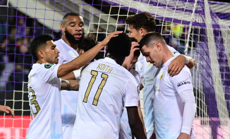 Οι παίκτες της ΑΕΚ πανηγυρίζουν το γκολ του Γκατσίνοβιτς/ (ΑΝΤΩΝΗΣ ΝΙΚΟΛΟΠΟΥΛΟΣ / EUROKINISSI)