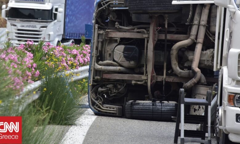 Φορτηγό έπεσε από γέφυρα της Πέτρου Ράλλη στη Θηβών – Μεγάλο μποτιλιάρισμα