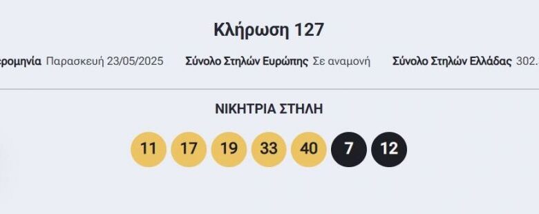 Ολοκληρώθηκε η 127η κλήρωση του Eurojackpot που πραγματοποιήθηκε σήμερα, Παρασκευή (23/5).