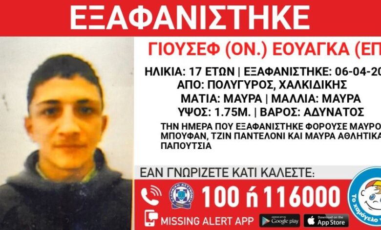 Χαμόγελο του παιδιού: Συναγερμός για την εξαφάνιση 17χρονου στη Χαλκιδική