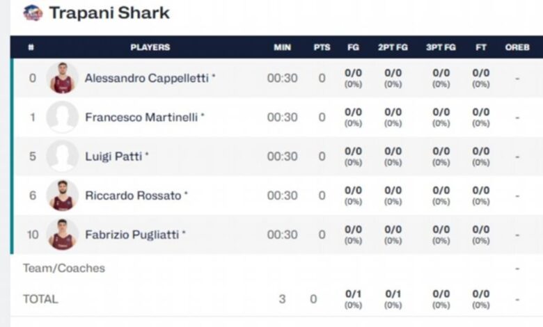 Hapoel Holon-Trapani Sharks finisce prima del termine del primo quarto. I siciliani erano rimasti con un solo giocatore. Hanno lasciato il campo Rossato, Cappelletti e Pugliatti. Poi il quinto fallo di Patti. 38-5 dice il tabellone pic.twitter.com/kmCUi7jBst