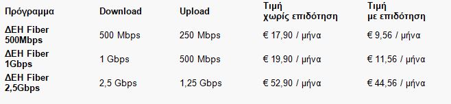 Οι νέες τιμές ΔΕΗ Fiber με Gigabit Voucher