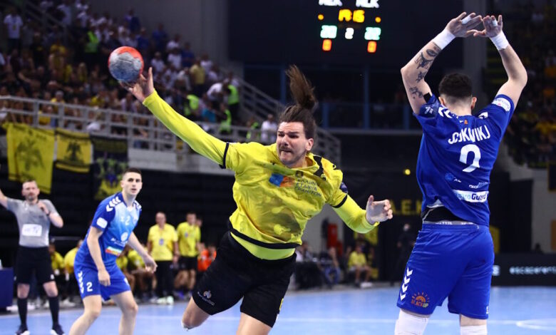 Πολύ δύσκολη κρίνεται πλέον η προσπάθεια της ομάδας χάντμπολ της ΑΕΚ να κατακτήσει για δεύτερη φορά στην ιστορία της το European Cup ανδρών. Στον πρώτο τελικό της διοργάνωσης, που έγινε στην κατάμεστη SUNEL Arena των Ανω Λιοσίων, η Ένωση ηττήθηκε 29-25 (ημίχρονο 16-14) από την Αλκαλόιντ της Βόρειας Μακεδονίας και πλέον αναζητά υπέρβαση και νίκη με +5 στη ρεβάνς, που θα γίνει την επόμενη Κυριακή (25/5) στα Σκόπια.