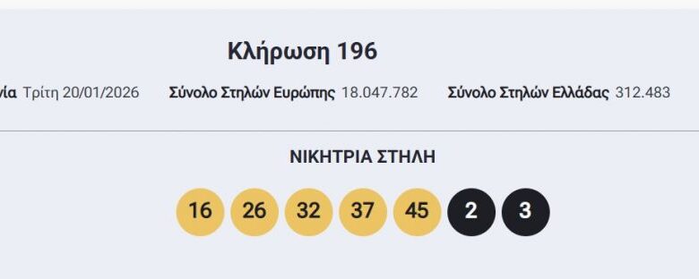 Πραγματοποιήθηκε σήμερα, Τρίτη (20/01), η μεγάλη κλήρωση του Eurojackpot, το οποίο στην πρώτη κατηγορία μοιράζει το ποσό των 42 εκατομμυρίων ευρώ.