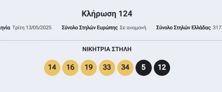 Ολοκληρώθηκε η 124η κλήρωση του Eurojackpot που πραγματοποιήθηκε σήμερα, Τρίτη (13/5).
