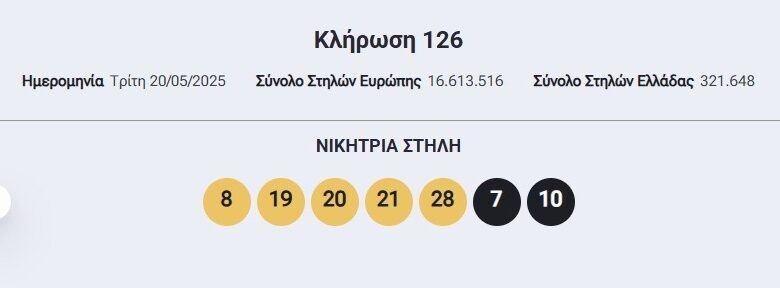 Ολοκληρώθηκε η 126η κλήρωση του Eurojackpot που πραγματοποιήθηκε σήμερα, Τρίτη (20/5).