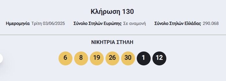 Ολοκληρώθηκε η 130η κλήρωση του Eurojackpot που πραγματοποιήθηκε σήμερα, Τρίτη (3/6).