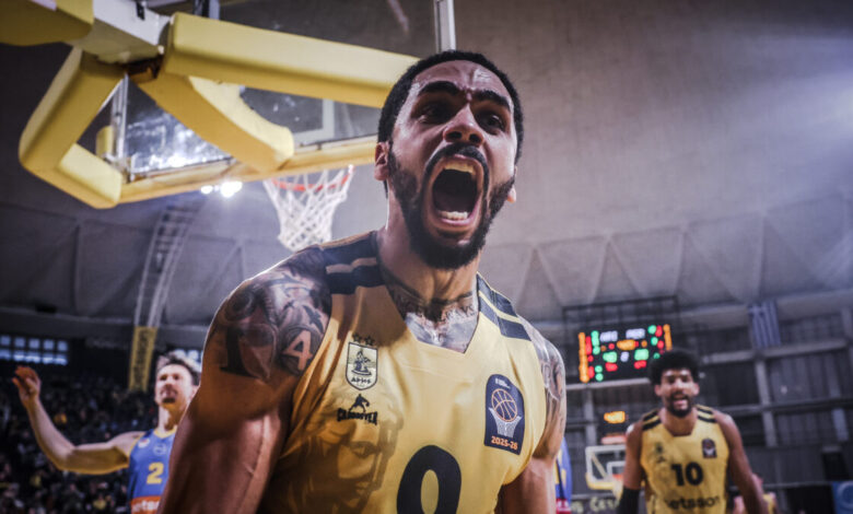 Ο Ελάιζα Μήτρου-Λονγκ πανηγυρίζει για τον Άρη (ΒΑΣΙΛΗΣ ΒΕΡΒΕΡΙΔΗΣ / ΜΟΤΙΟΝ ΤΕΑΜ)