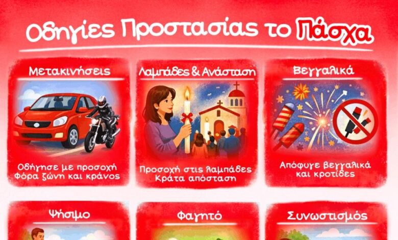 - Λαμπάδες & Ανάσταση: Να τηρούνται αποστάσεις και να αποφεύγεται ο συνωστισμός, δίνοντας ιδιαίτερη προσοχή στη χρήση των κεριών.