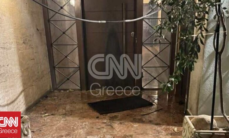 Προκλήθηκαν μικρές ζημιές στην είσοδο της πολυκατοικίας.